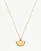 A distinctive addition to your layers. Inspired by Colombian artistry, this necklace features bobble-trimmed charms suspended from a unique fan-shaped pendant. A standout style you can easily wear day to night, create contrast by teaming with a gemstone choker.