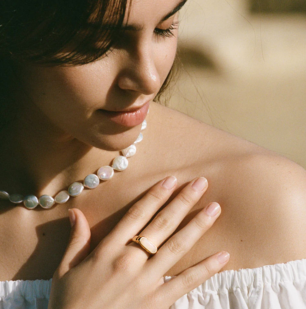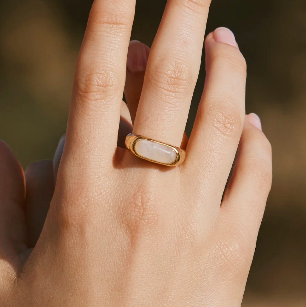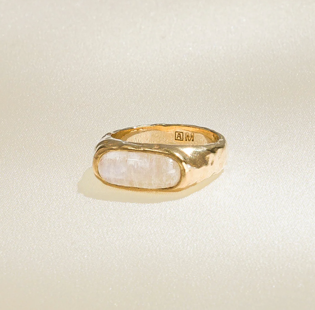 Our Losna moonstone signet ring combines an iridescent glow with an oval design.