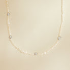 Beaded with white and grey freshwater pearls, this necklace was handmade to stand out against your sun-kissed skin. A reminder to cherish the small and delicate things in your life.