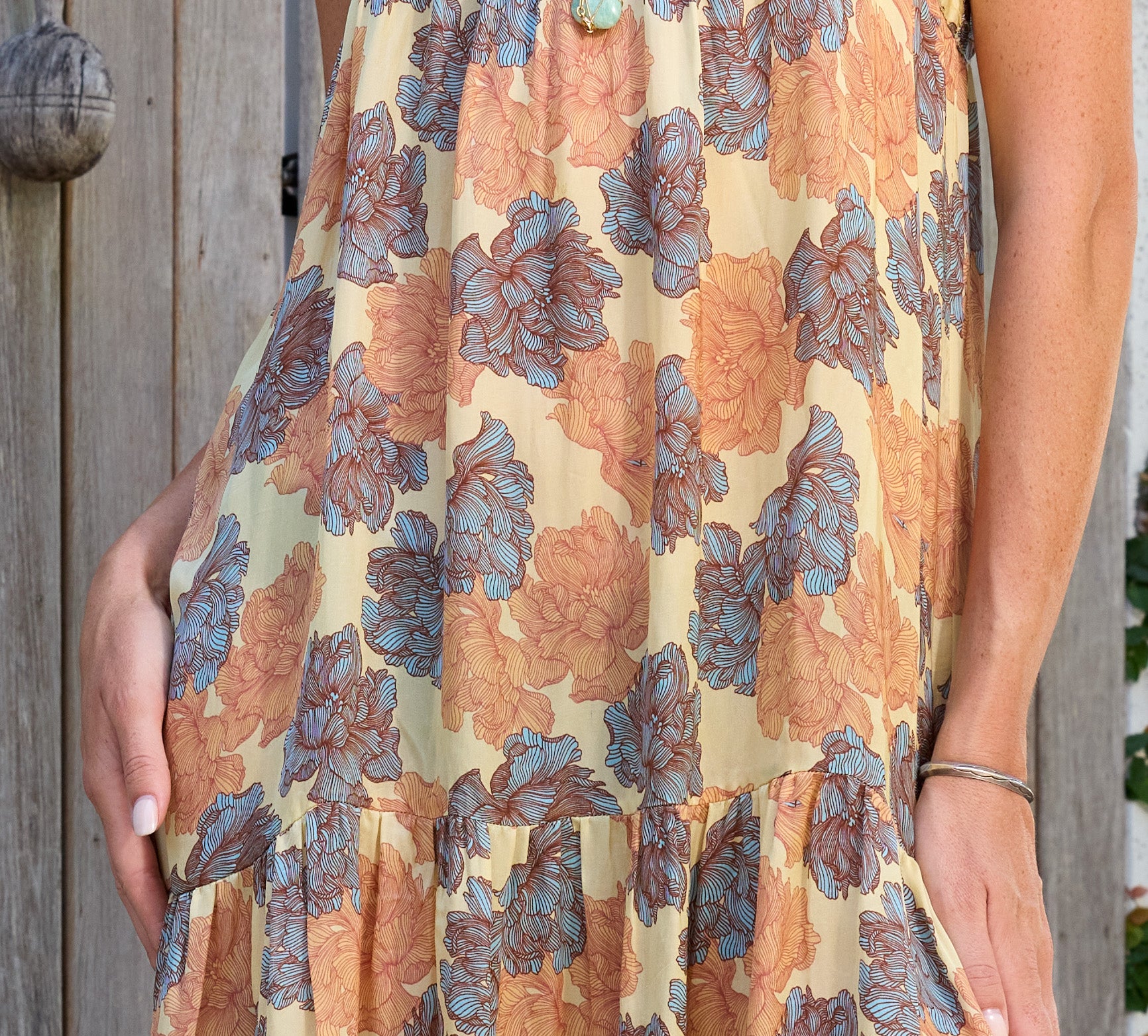 When romance meets ease. The Natalia dress is dreamy and breezy layer her with necklaces and gold sandals.