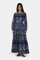 The Nia Dress is a maxi length dress with long sleeves, elasticated cuffs and a flared, gathered skirt. The dress features a button-down centre front with rouleau loop detailing and a waist tie to define the silhouette. An effortless piece for elevated everyday dressing or special occasions.