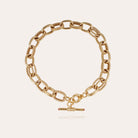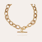 Necklace assembled from a succession of smooth and grooved rings hand-mounted to form a fine gold-plated chain and embellished by a barrette clasp set with Carnelian fine stones.