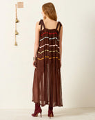 Cut from cupro-chiffon, our relaxed maxi dress has a fluid drape with ruched tiers and tie shoulder straps. Semi-sheer with a silky feel, it's finished with vibrant grosgrain stripes.