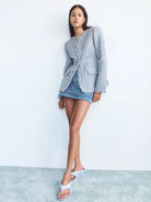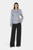 The Jagger Jacket is a fitted boucle style jacket a tailored silhouette and shoulder pads. Fully lined and finished with front buttons and a raw fray detail at the hem and cuffs. Pair back with your wardrobe staples to elevate the everyday.