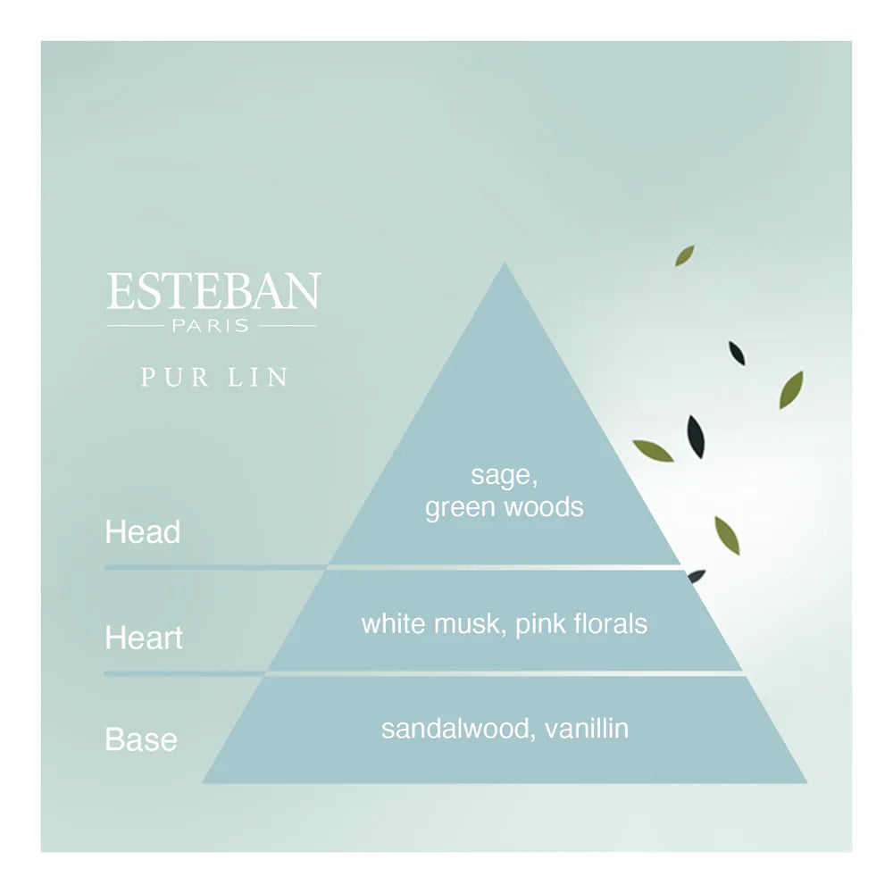 Discover Pur Lin... a light breeze, and a linen veil undulates across a sky full of fluffy clouds. Its fragrance, so natural and infinitely fresh, is the height of calm and serenity. In the top notes of this elegant fragrance is an unprecedented sensation of freshness brought by extracts of sage and green woods. Its heart combines the comforting sweetness of white musks with the clean and universal elegance of pink floral notes. Sandalwood essential oil and a fair dose of vanillin in the base notes come together to perfect this feeling of comfort.