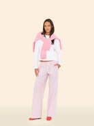 Earn your stripes. Made in our lightweight cotton stripe, Brinna is a wide-leg pull-on pant with an elasticized waist, contrast braided drawcord, side seam pockets, and back pockets with button closures.
